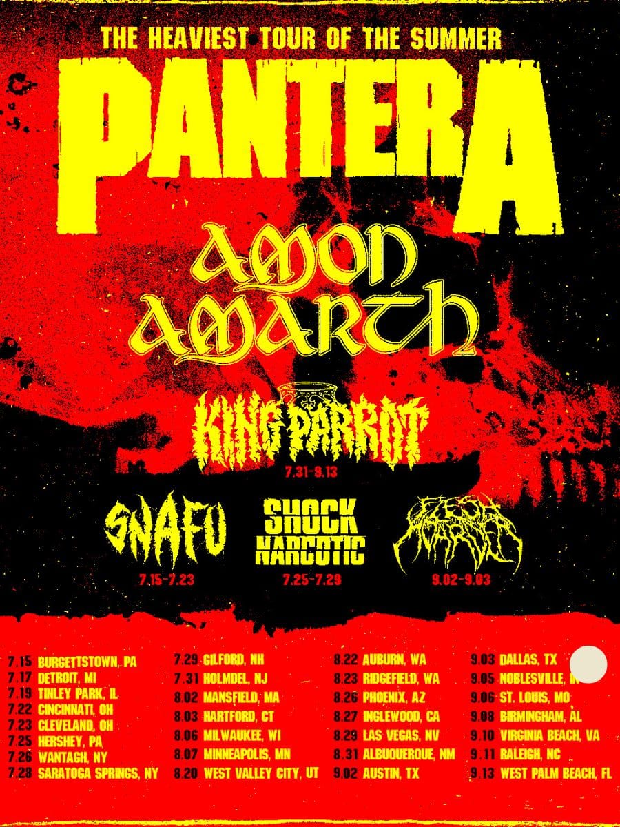 Pantera The Heaviest Tour Of The Summer Tour Setlist: Panterra’s “The Heaviest Tour of the Summer” will be coming to a venue near you in July, August, and September. The show starts on July 15 in Burgettstown, PA, with Amon Amarth in support. It will stop in Detroit, Cincinnati, Hershey, Mansfield, Milwaukee, Phoenix, Las Vegas, Dallas, St. Louis, Raleigh, and other places before moving on.